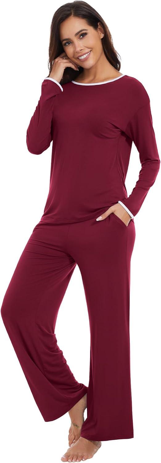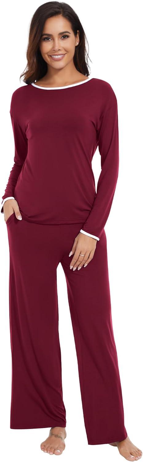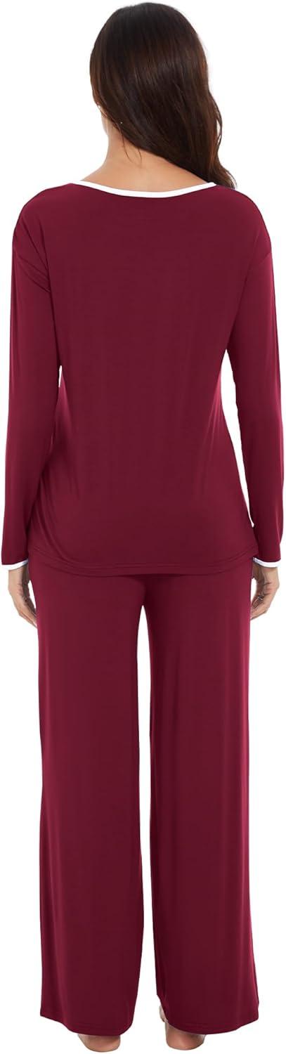 WiWi Women's Pajamas Set Soft Long Sleeve Tops and Pants Viscose from Bamboo Sleepwear Lightweight Pj Loungewear S-XXL(D-wine)