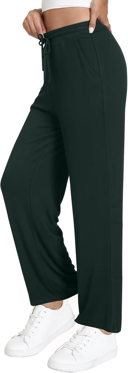 WiWi Women's Sweatpants Loose Casual Lounge Work Pants Lightweight Yoga Pant with Pockets S-XXL(A-dark Fence Green)