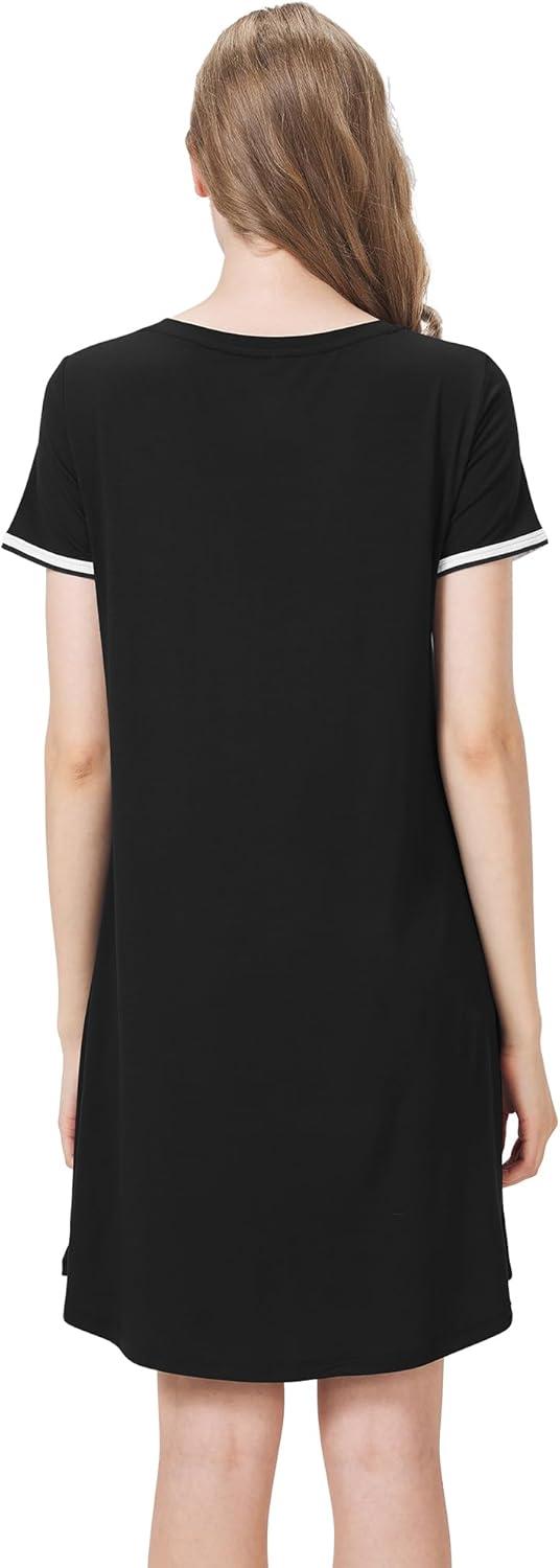 WiWi Women's Viscose Bamboo Nightgowns Casual Short Sleeve Sleepwear Scoop Neck Nightshirts S-XXL(Black)