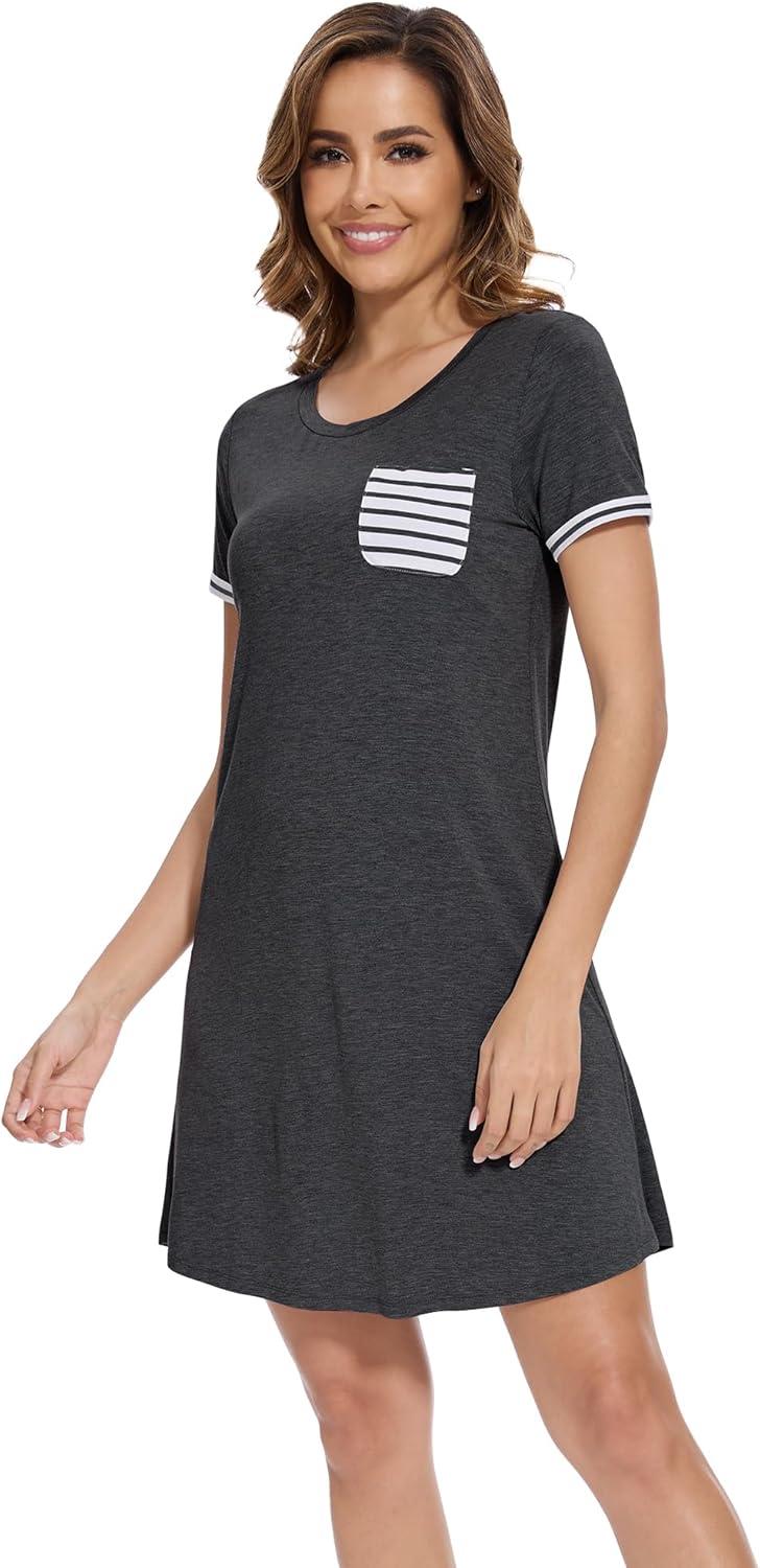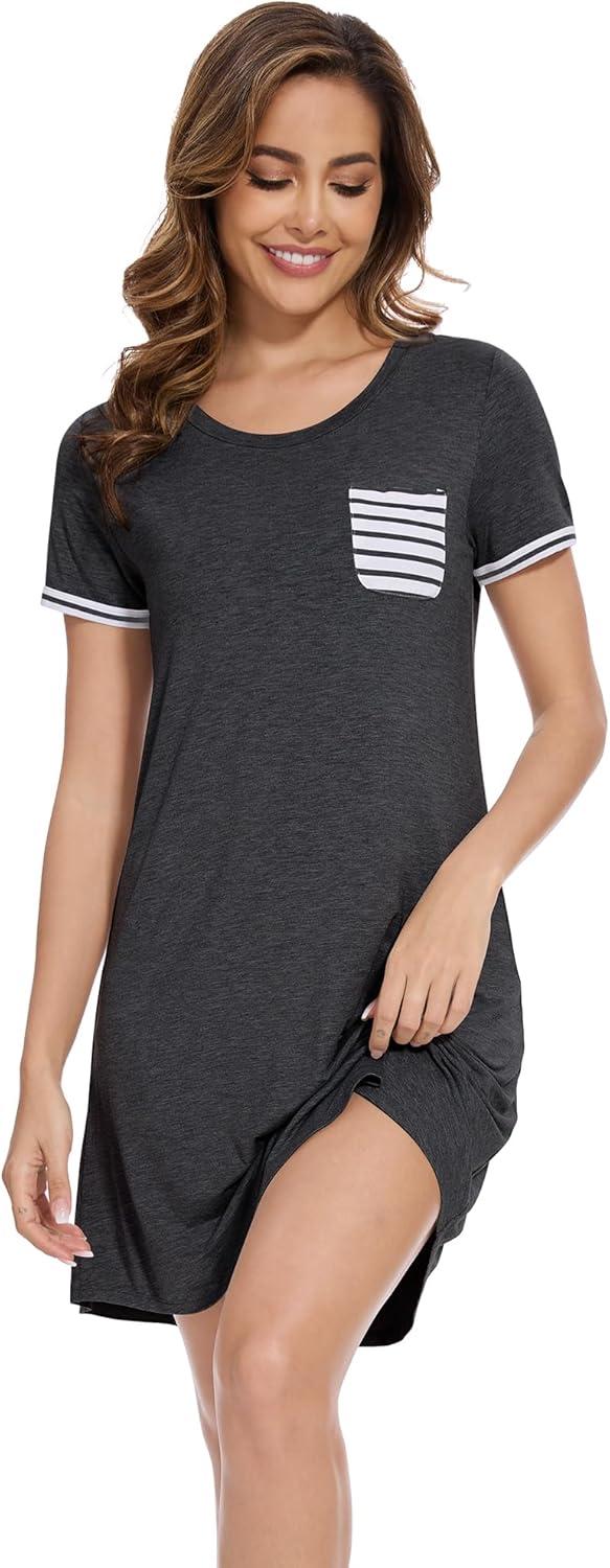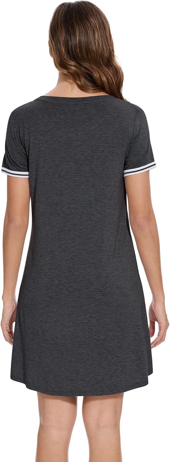WiWi Women's Viscose Bamboo Nightgowns Casual Short Sleeve Sleepwear Scoop Neck Nightshirts S-XXL(Dark Heather Grey)
