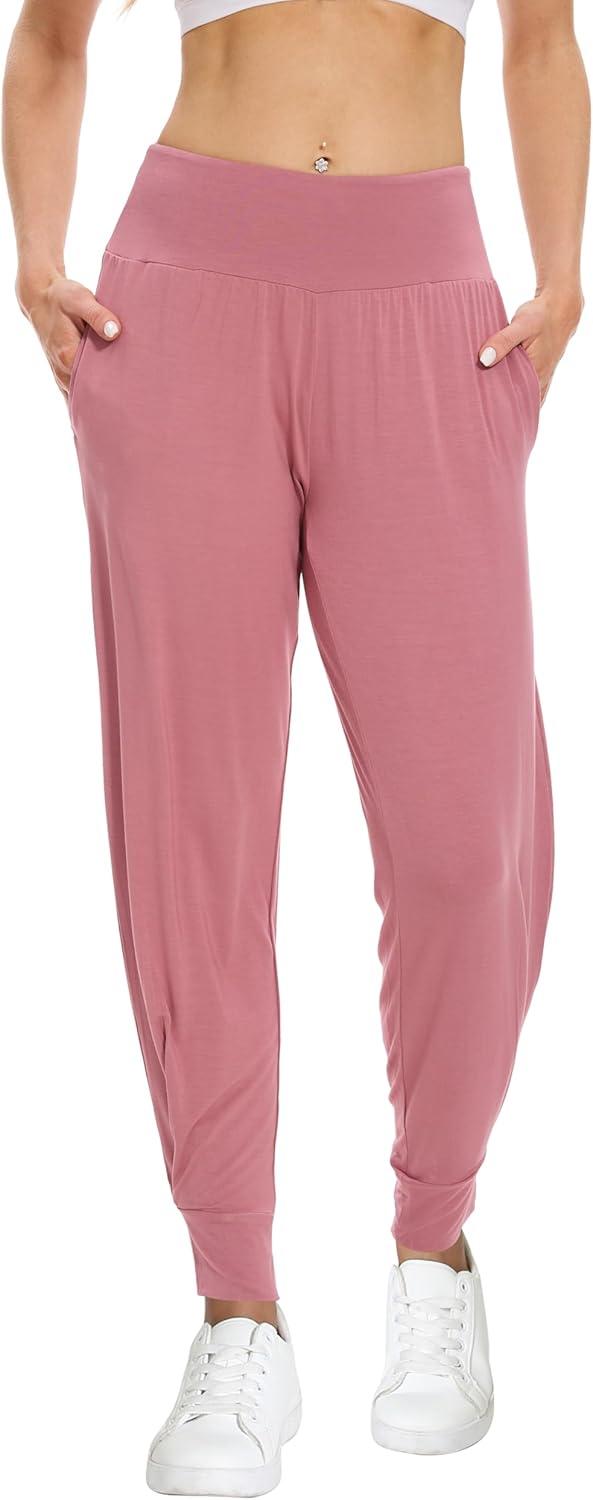 WiWi Women's Yoga Pants Viscose from Bamboo Stretchy Joggers Pant Comfy Lounge Bottoms Pajama S-XXL(C-dusty Rose)